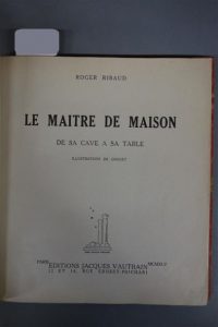RIBAUD (Roger). LE MAÎTRE DE MAISON. De sa cave à sa table. PARIS, ÉDITIONS JACQUES VAUTRAIN, 1945. Un volume, petit in-4, de 204 pp., demi-reliure en vélin rigide blanc. Dos lisse portant une pièce de titre en maroquin rouge, couverture conservée.