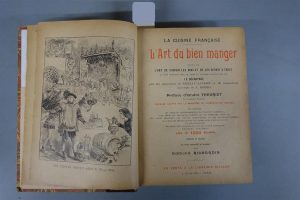 RICHARDIN (Edmond). L'ART DU BIEN MANGER. Suivi de l'art de choisir les vins et de les servir à table et d'un chapitre spécial, orné de figures explicatives sur le découpage. Puis les Aphorismes de Brillat Savarin en 20 compositions hors texte de A. Robida. Préface d'André Theuriet... PARIS, NILSSON, s. d. (vers 1905). Un fort volume, petit in-8, de XV pp., 914 pp., demi reliure en basane marron. Dos à 4 nerfs portant le titre doré. Les derniers feuillets de la table (un peu rognés) ont été inversés à la reliure. Un feuillet (p. 825 - 826) déchiré à été réparé avec du scotch.