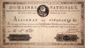2 assignats: 50 livres création du 19 Juin 1791, série 11B n°25577.