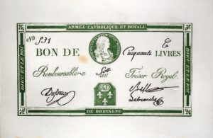 Bon de 500 livres à l'éffigie de Louis XVII. Armée catholique et royale de Bretagne TB.