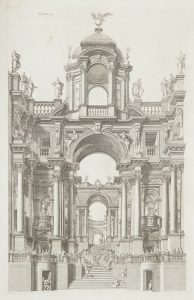 publiées, de l’un des plus beaux traités de perspective anciens, composé par le peintre de génie italien Andrea Pozzo (1642-1709). L’ouvrage paru pour la première fois en 1693 pour le premier volume et en 1700 pour le second. Les deux parties sont distinctes puisque si la seconde s’intéresse à la perspective dans la peinture, la première, que nous avons ici, porte sur l’architecture. L’édition est bilingue, latin-italien, et comporte un portrait de Pozzo par Jean-Charles Allet, 2 titres, l’un en latin l’autre en italien, et 100 remarquables planches sur les 101 décrites. La planche 100 n’a pas été imprimée comme c’est le cas également dans d’autres éditions. Cette particularité a été relevée par Brunet qui précise aussi que les réimpressions de 1702, 1717, 1741 et 1764 “ont à peu près autant de valeur” que les éditions originales. Exemplaire remboîté, placé dans une reliure en vélin ancien. Première garde blanche déchirée et le papier de la seconde doublure est en partie décollé. Quelques mouillures.