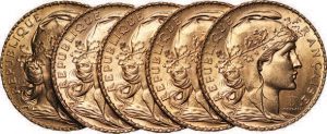 20 francs or Marianne (5 ex.) G. 1064a. TTB Les 5 monnaies
