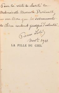 Pierre Loti La Fille du Ciel Drame Chinois. Paris Calmann-Lévy, 1911. In-8, avec envoi autographe signé de …