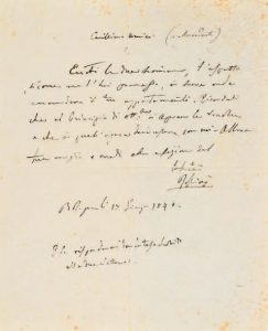 Lettre autographe signée adressée au compositeur Giuseppe Saverio Mercadante. Bologna, 17 juin 1840.1 page in-4 en italien.