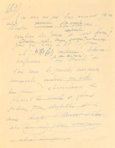 Châteaux, pépés, trésors, écuries, ambassades...plus que ceux de 89 ?...moins ? ah ?... de ces débats je vous dis que ça ! Sorbonne !...Conférences !... ‘Annales' de l'an 2000 les grandes marquises communistes s'arracheront les places se feront fédérer pour pas louper le moindre strapontin tantôt, une seule bouleversante envolée de leur formid Herriot d'alors...ou Henriot ou l'Abbé Pierre [...] Que je retourne un peu à l'actuel: