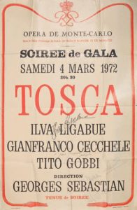 OPERA DE MONTE CARLO Grande affiche murale pour la soirée de gala de la Tosca du 4 mars 1972. Rare exemplaire portant …