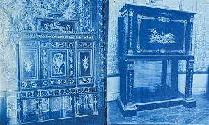Réunion de 36 cyanotypes du XIXe images: 16,5 x 11,5 à 39,5 x 29,5cmEléments d'architectures, décorations intérieures, industrie, échantillons de dentelles...