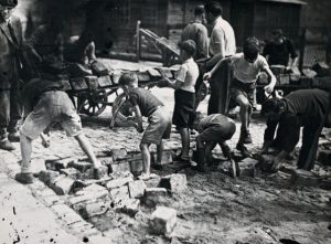 Gosses aux barricades, construction d'une barricade rue Maubeuge, barricade vers Notre