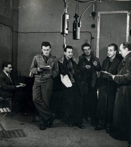 -ANONYME. Jacques Prévert et son équipe à une émission de radio, vers 1935