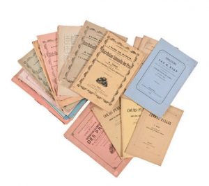 19 p. in-8°, br., couv. jaune imprimée. (deux plaquettes non citées par Flori). Nous joignons 21 plaquettes de discours, allocutions à l'occasion de la distribution solennelle des prix.