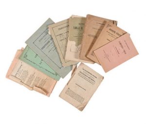 Ajaccio: Impr. Joseph Pompeani, 1890. - 77 p.; in-8°, br., couv. imprimée crayonnée, sans le 2e plat de couv.. Flori précise: Recueil des principaux documents se rapportant à la translation descendres du général Paoli; Arrighi, Arrigo. - Notice historique sur le général Cervoni. - Bastia: Ollagnier, 1869. - 126 p.; in-16°, br. couv. grise imprimée, dos cassé;
