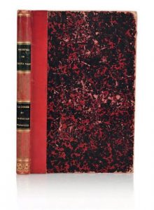 Le Ministre d'État par le docteur...Médecin par quartier de S. M. L'Empereur - Paris: J.B. Baillière et fils, 1864. In-8°, 255 p., demi-basane rouge, dos lisse orné de filets et palette dorés, pièces de titre anthracite. Reliure de l'époque, petite galerie de vers en pied, sinon bon exemplaire, très légères rouss. en début et fin de vol. Flori, 3162, ne cite qu'une publication de 15 p. parue en 1868.
