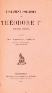 T. I, p. [67]-81; Jollivet, Maurice. - « Un roi de Corse au XVIIIe siècle, d'après de nouveaux documents ». - Revue du Monde latin (Paris). - Mai-août 1889; Théodore 1er et Orsini, E. - Testament politique de Théodore 1er Roi des Corses publié par... -