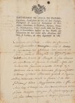 Chardon, Daniel Marc Antoine. Intendant de justice, police et finances, près des troupes du Roi en l'Isle de Corse... Pièce imprimée à son nom et titre, vignette en tête, 2 pp. in-folio manuscrites, copie visée en mai 1769 par les communautés du cap Corse. Le chevalier Chardon établit le rolle des communautés du Cap corse qui doivent fournir des chevaux ou des mulets au parc de Bastia. Les podestats sont chargés de l'exécution de cet ordre.