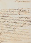 L. a. s., Calvy, le 6 mars 1757. 1 p. in-4°. Au sujet d'un article du traité relatif à des visites sur les bâtiments dans les ports... Habile restauration en marge.