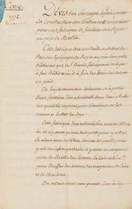 1778 (datation en tête). 10 p. in-folio, maintenues par un ruban de soie vert. Il est précisé que cette fabrique sera construite au dessus du parc des équipages du Roy at auprès d'un petit bâtiment que le sieur Bruciu fabriquant de soye a fait bâtir et où il a fait les essais des cocons du pais.