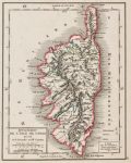 Anonyme. Département de l'Isle de Corse divisé en 6 arrondissements et 68 cantons. 23 x 18, limites aquarellées.