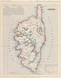 Atlas Migeon, Corse, gravée par Lecocq, Barbier et Waltner.ca 1880, aquarellée.