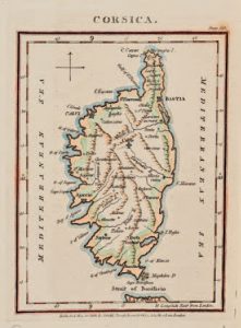 Chanlaire, Piere Grégoire. Départements du Golo et du Liamone, 1801. 23 x 18, limites aquarellées, bord sup. effrangé. Tirée de l'Atlas de la république française.