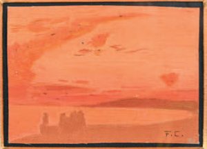 Paysage de bord de mer (La Parata ?). Huile sur carton, signée du monogramme F C en bas à droite. 10 x 13,5, sous baguette bois doré.