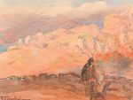 Aquarelle, signée en bas à gauche, 23 x 65, baguette bois doré.