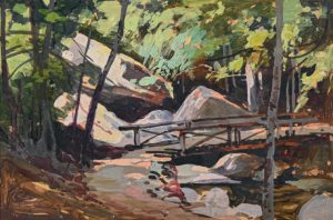 Vizzavona, la Cascade [mention portée en bas à gauche du tableau]. Avec pont de franchissement de la rivière.