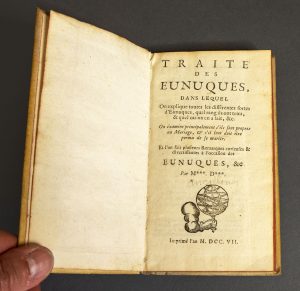 [ANCILLON, Charles]. — Traité des eunuques, dans lequel on explique toutes les différentes sortes d'eunuques, quel rang ils ont tenu, & quel cas on en a fait — [Hollande], 1707.