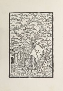 relatant la découverte du Nouveau-monde. Elle comprend 4 bois gravés à pleine page. Ce fac-similé a été réalisé par Adam Pilinski en 1858, selon le procédé de son invention, tiré à petit nombre et semble-t-il non mis dans le commerce. Le procédé Pilinski consistait à utiliser à la fois la photographie et la lithographie ; cela permettait d’obtenir une reproduction fidèle du document original si bien qu’un œil mal exercé pourrait parfois avoir du mal à distinguer la copie de l’original. Exemplaire très bien conservé.