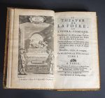 À l’image de toute une société ultra réglementée, la Comédie-Française s’opposa plusieurs fois, au nom de son monopole, au succès du théâtre de foire. Elle lui imposa par un arrêt du parlement ubuesque l’interdiction de tous les dialogues parlés. Cela donna naissance à ce curieux théâtre par écriteaux introduit à la Foire Saint-Germain en 1710 ou, encore, entraîna l’usage du chant mêlé à l’action théâtrale. Dans les premiers volumes, un certain nombre de pièces sont ici dites “à écriteaux”. Les écriteaux étaient des couplets écrits sur une pancarte qui, le moment venu, se déroulait aux yeux du public, au-dessus de chaque acteur. L’orchestre jouait la musique ; les spectateurs chantaient les paroles du rôle que l’acteur jouait. Les autres pièces étaient chantées par les acteurs eux-mêmes. Chaque tirade obéissait à un air dont le numéro renvoie aux pages de mélodies gravées à la fin des volumes. Puis, grâce à des auteurs de talents, comme Lesage, le théâtre de foire se transforma en vaudeville et opéra-comique. D’où le titre de ces volumes et l’évolution de leur contenu. Ce recueil est très rare. On ne recensait jusqu’ici que l’exemplaire en veau de Marie-Antoinette auquel il manquait huit planches et l’intégralité des cahiers de musique dans le premier volume (Christie’s Paris, 11 décembre 2008, lot 9). Enfin, la duchesse de Gramont, née Choiseul-Stainville, rassembla à l’intérieur de sa bibliothèque déjà particulièrement intéressante (par le contenu, pour une fois), une collection de premier plan sur le théâtre. Son exemplaire des œuvres de Marivaux, auteur si difficile et si important à posséder dans une collection littéraire, est connu.