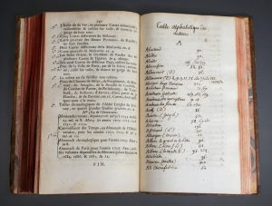 -- L.P. Le Tors de Chessimont (ex-libris armorié ; 1748-1788), exemplaire cité dans le Catalogue des livres de la bibliothèque de feu monsieur Le Tort de Chessimont, Paris, 1789, n° 1443 : “table mss. et prix”