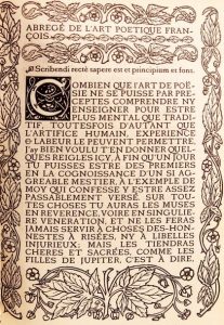 Abrégé de l'art poétique. London, Eragny Press, Hacon & Ricketts, 1903. In-8, bradel cartonnage beige et dominoté, titre et nom d'auteur frappés en or au premier plat (Reliure de l'éditeur). Édition illustrée d'encadrements, lettrines et bandeaux par Lucien et Esther Pissarro, et tirée sur leurs presses à Hammersmith.