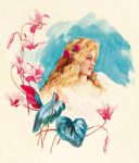 Fleurs de cyclamens. Paris, Imprimé pour A. Girard, 1899. Petit in-4, maroquin bleu, encadrement de filets dorés et listels de maroquin lie-de-vin et brun, dos orné de même, filets sur les coupes, guirlande intérieure dorée, doublure de maroquin olive, grand décor de fleurs et feuilles de cyclamens mosaïquées de maroquin vert et violet, mauve sertis or, chiffres dorés, gardes de soie brochée vert pâle, tranches dorées, chemise et étui (Marius Michel). Édition illustrée de 11 eaux-fortes en couleurs, dont la couverture, le titre orné, 2 en-têtes, 2 culs-de-lampe, les faux-titres et 3 hors-texte, par André-Charles Coppier. Le texte est orné d'encadrements floraux gravés sur bois et coloriés à la main.