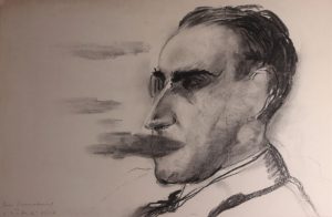 Portrait de Léon Pierre-Quint. 1928. Pièce encadrée, 34 x 49 cm. Dessin original au fusain signé par Joseph Sima représentant Léon-Pierre Quint (1895-1958), directeur littéraire chez Simon Kra, des Éditions du Sagittaire.