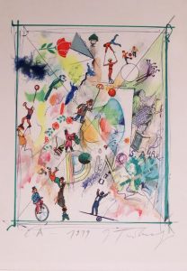 Dinosaure. 1979. 56 x 42 cm, sous cadre. Lithographie en couleurs, datée et signée au crayon par l'artiste, avec mention d'épreuve d'artiste.