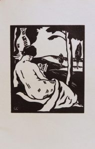 Quatre poèmes. Paris, Armand Huart, 1923. Petit in-4 carré, broché, couverture illustrée. Édition illustrée ornée de 5 bois gravés par Gabriel Charlopeau.