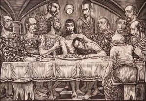 Passion du Christ. Cinq gravures. Paris, Louis Jou, 1934. In-4, en feuilles. Double feuillet de texte et 5 planches gravées sur bois (30 x 21 cm.) sur papier japon, chemise cartonnée.