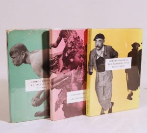 Ensemble 3 ouvrages sur Robert Doisneau, Henri Cartier Bresson et George Rodger. Paris, Robert Delpire, 1953-1955. 3 volumes in-12, cartonnages, jaquettes illustrées en couleurs jaune, rose et verte. Les Parisiens tels qu'ils sont. – Les Danses à Bali. – Le Village des Noubas. Collection complète en édition originale. Ces trois volumes composent la collection « Huit » dirigée par Robert Delpire, pionnier de l'édition photographique depuis 1951.