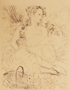 Quelques sonnets. Paris, chez l'artiste, 1955. In-4, en feuilles, couverture, chemise et étui. Édition illustrée de 51 eaux-fortes en noir gravées par Jacques Frélaut d'après les compositions d'André Dunoyer de Segonzac. Tirage à 210 exemplaires sur vélin d'Arches, celui-ci un des 35 de tête comportant une suite sur japon des eaux-fortes pour l'ouvrage et une sur hollande signée et numérotée de 20 eaux-fortes ne figurant pas dans le livre.