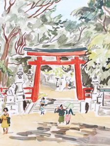 Myriade de feuilles assemblées du pays du Soleil Levant. Bièvres, Pierre & Philippe de Tartas, s.d. In-folio, en feuilles, emboîtage rouge, noir et doré de l'éditeur. Édition illustrée de lithographies originales en couleurs d'Yves Brayer.