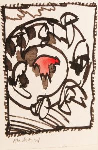 Tirage à 49 exemplaires sur B.F.K. de Rives, signés par l'auteur et l'artiste, celui-ci un des 31 rehaussés d'une encre originale en noir et rouge de Pierre Alechinsky, signée par l'artiste.
