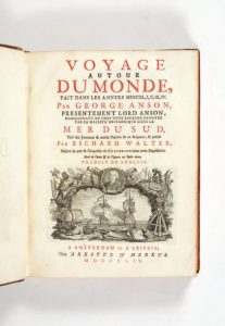 Voyage autour du monde fait dans les années 1740, 1741, 1742, 1743, 1744. Amsterdam et Leipzig et Paris, Jombert, 1749.