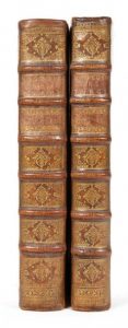 Deux vol in-folio de (12) ff. (frontispice inclus), 903 pp. (mal chiffrées 907), (14) ff.; (6) ff. (frontispice inclus), 204 pp., (6), (2) ff., 89, (3) pp., 274 cols (mal chiffrées 273), (3) pp., 116, (2) ff., 85, (10) pp., reliure de l'époque en veau brun, dos ornés, tranches rouges.