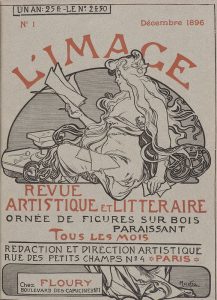 couvertures conservées (reliure de l’époque). COLLECTION COMPLÈTE de cette importante revue mensuelle d’art moderne fondée par la corporation française des graveurs sur bois et publiée sous la direction littéraire de Roger Marx et Jules Rais et sous la direction artistique de Tony Beltrand, Auguste Lepère et Léon Ruffe. L’Image se proposait “de grouper, sans parti pris d’école, dans une même recherche d’art, les écrivains, les dessinateurs, les graveurs, et de parvenir à l’unité absolue de l‘illustration et du texte, en n’offrant que d’original et d’inédit”. Collaborèrent à cette revue certains grands noms de l’époque tels que George Auriol, Mucha, Maurice Denis, Daniel Vierge, Lucien Pissarro, Pierre Louÿs, Helleu, Rémy de Gourmont, Jules Renard, Vallotton, Maurice Barrès, Victor Prouvé, Gustave Kahn, Lucien Descaves, Puvis de Chavannes, Auguste Rodin, Degas, Luc-Olivier Merson, etc. Bel exemplaire complet du dos et des plats de la couverture générale et des couvertures de chacun des numéros. Celle du numéro 1 est illustrée par MUCHA et celle du numéro 11 par TOULOUSE-LAUTREC. Dos restauré.