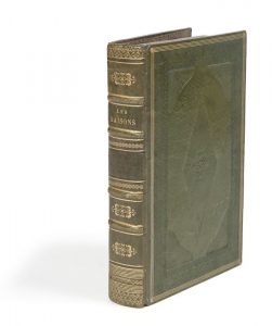 large dentelle en encadrement à motifs de palmettes et de fleurs, et au centre d’une plaque restauration en losange avec écoinçons comprenant un quart de cercle aux rayons courbes et des filets ondulés, dos à nerfs orné, roulette dorée sur les chasses, tranches dorées (reliure de l’époque). Nouvelle édition de ce célèbre poème, imprimée sur papier vélin et ornée d’un frontispice gravé par Roger d’après Desenne. Les Saisons sont suivies de Pièces fugitives, de contes et de fables orientales. Bel exemplaire en reliure romantique de l’époque non signée mais de bonne facture. Dos légèrement passé, quelques frottements d’usage. Déchirure dans la marge supérieure de deux feuillets (pp. 133-134 et 135-136), quelques rousseurs éparses. Provenance : Butel, avec ex-libris de l’époque.
