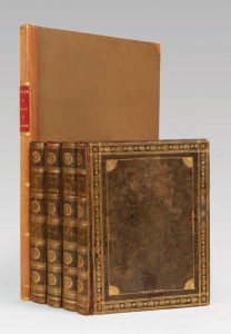 Bel exemplaire dont les volumes de texte, tirés sur papier bleuté, ont été recouverts à l'époque de superbes reliures décorées dans le style de Bozérian. Rare dans cette condition.