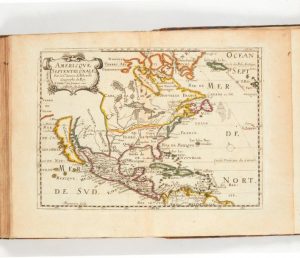Très rare volume, resté inconnu à Brunet et même à Sabin, qui ne cite de l'ouvrage que les deux éditions de 1692 et 1693, toutes deux de format in-8 et qui ne contiennent aucune carte. Le continent américain est cependant présent en tout ou partie sur 18 des cartes de cette édition...