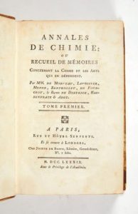 Créées en avril 1789 par Lavoisier et ses collègues, les Annales de chimie se voulaient l'organe des partisans de la nouvelle chimie, en opposition aux Observations sur la physique, journal fondé en 1771 par l'abbé Rozier, mais dirigé depuis 1787 par l'irréductible « phlogisticien »