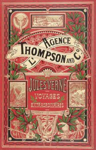 VERNE (Jules). L’Agence Thompson and Co. Illustrations par L. Benett. Vues Photographiques. Planches en chromotypographie. Paris : collection Hetzel, (1907). — Volume double in- 8, (2 ff.), 492 pp. , 12 planches. Cartonnage à un éléphant,...