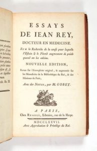 REY (Jean). Essays sur la Recherche de la cause pour laquelle l'Estain et le Plomb augmentent de poids quand on …