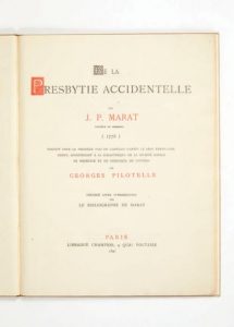 De la Presbytie accidentelle, par J.-P. Marat, docteur en Médecine (1776). Traduit pour la première fois de l'anglais d'après le seul exemplaire connu, appartenant à la Bibliothèque de la Société Royale de Médecine et de Chirurgie de